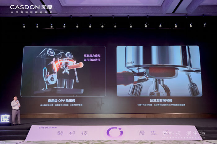 发布会上,品牌TVC“水哲学”大片《漫》、备受期待的AI数字生命体“小紫”以及凯度ZR Pro 2微蒸烤炸炖炒焗一体机等多款新品惊艳亮相,共同描绘了一幅与用户情感深度共振的全新厨居生活方式图景。