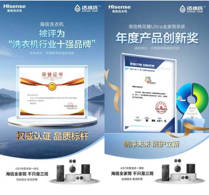 在IFA2025同期召开的第二十一届(2025)中国家用电器创新成果发布盛典上,海信三筒洗衣机(海信棉花糖Ultra全家筒)获得“年度产品创新奖”,其对分区洗护逻辑的彻底重构,赢得了行业和市场的高度认可。同时在2024-2025年度中国家用电器品牌评价活动中,海信洗衣机被中国家电院评为“洗衣机行业十强品牌”。