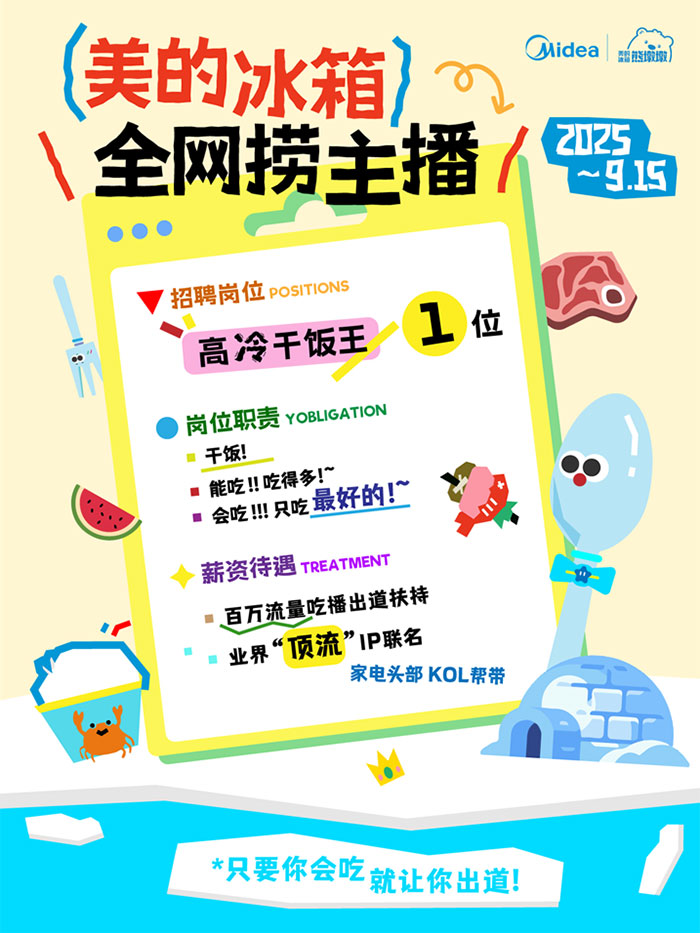 五险一金配齐,工资当日到账,不用打卡考勤,也无需坐班,更没有直属上司盯着 —— 最近,美的冰箱一则画风清奇的招聘公告火遍全网。招聘公告里,美的宣称要诚聘一位“吃播博主”,岗位要求简单到让人嫉妒:只要自带“高冷范儿”,还特能吃就行。网友们纷纷化身“柠檬精”:“这不就是我做梦都想拥有的工作吗?”