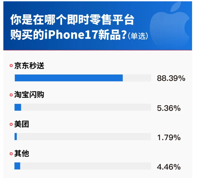 业界资讯 >iPhone 17首销调研报告显示 即时零售用户中近九成选择京东秒送