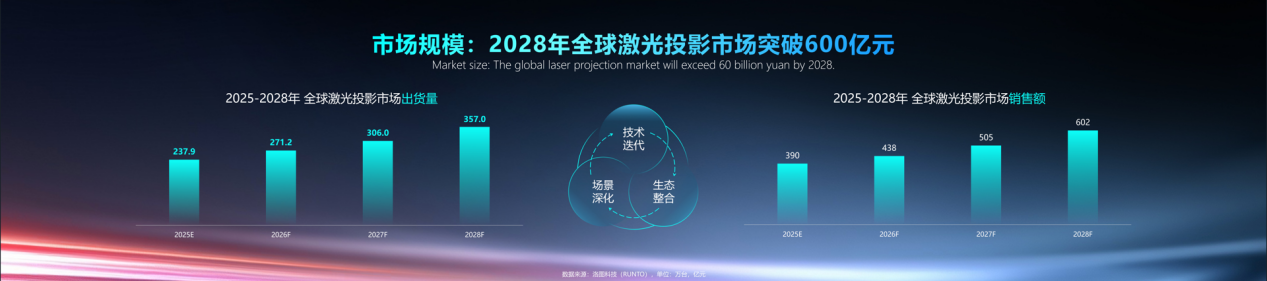 据洛图预测,至2028年全球激光投影出货量将突破350万台,销售额超600亿元。这场由技术、需求、场景共同推动的显示变革,已不再局限于传统彩电的替代叙事,而是开辟出一个以“光”为媒介的新市场——在这里,年轻人想要的不只是一块屏幕,更是一种自由、时尚、与生活和解的视觉生活方式。