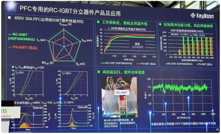 海信家电功率器件研发总监在现场进行分享,他展现了海信功率半导体基于RC-IGBT的产品规划,分析了RC-IGBT的特点、技术优势和挑战。海信作为系统终端,坚定看好RC-IGBT的应用前景,组建功率半导体团队专注于RC-IGBT的设计、开发及应用,研发了高可靠性RC-IGBT技术,针对家电PFC电路、压缩机逆变驱动等应用进行RC-IGBT产品设计开发,展示所研发的RC-IGBT性能特点。