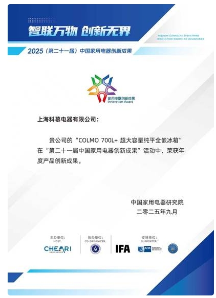 在全球家电行业竞争日趋白热化的背景下,中国高端家电品牌COLMO再度彰显创新底气。其700L+超大容量纯平全嵌冰箱凭借突破性设计理念与领先智能科技,不仅斩获2025年中国家电创新成果大奖,更在德国IFA国际消费电子展上惊艳亮相,向世界传递出中国智造的硬核魅力。这一荣誉的获得,既是对COLMO产品创新价值的高度认可,也恰好呼应了当下中国冰箱行业的转型趋势,为解读行业竞争逻辑的深层变革提供了鲜活样本。