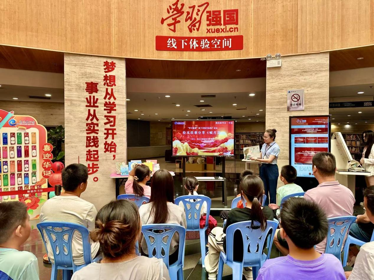 月满中秋,书香传情。2025年10月6日上午10点,顺德图书馆二楼“学习强国”线下体验空间洋溢着温馨与欢笑,一场以《喊月亮》为主题的中秋绘本共读活动在这里温暖开展。参加的亲子家庭齐聚一堂,在阅读与互动中感受传统文化的魅力,共度了一个充满知识与温情的上午。