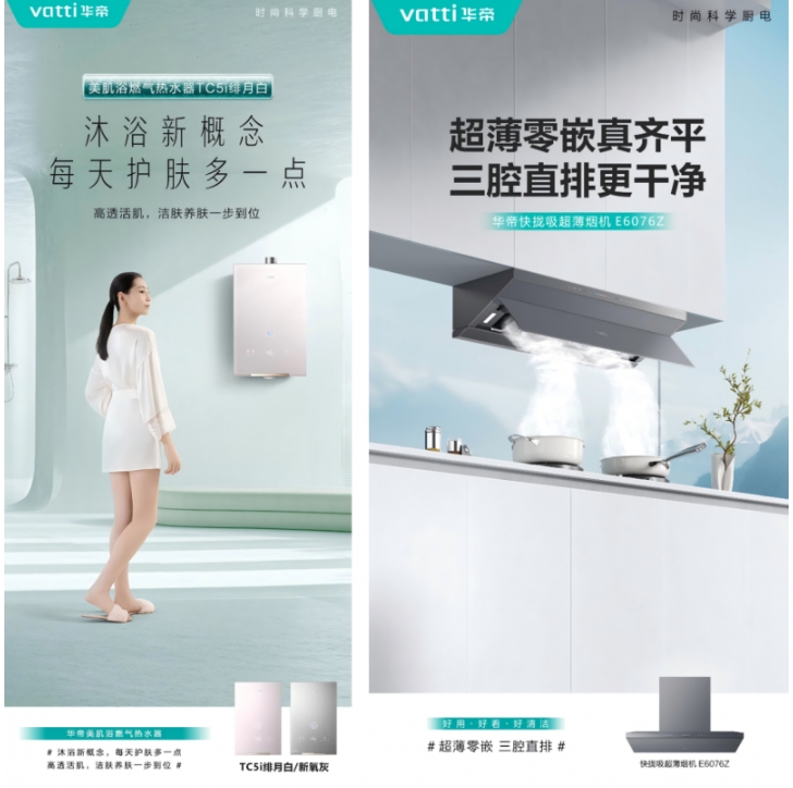 在产品层面,华帝聚焦三大核心品类,以创新科技回应现代厨房的健康与效能需求。美肌浴热水器将护肤科技融入沐浴体验,实现肌肤清洁与养护的双重升级;燃气灶具配备智能爆炒功能,兼顾猛火效率与安全节能;超薄烟机以精巧设计实现与橱柜无缝融合,依托三腔拢烟结构和强劲吸力有效防控油烟扩散。