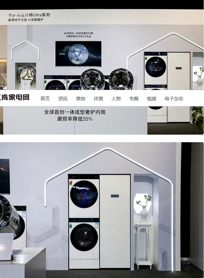 在卡萨帝展区,设计师Ultra系列以全球首创一体成型奢护内筒实现磨损率降低55%,为真丝、羊绒等提供奢品面料养护方案。