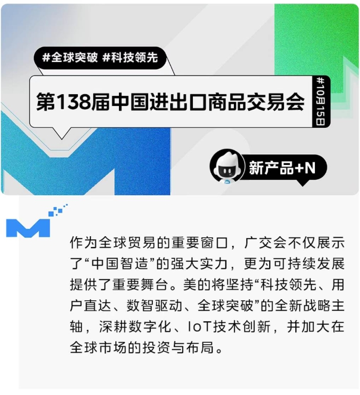 作为全球贸易的重要窗口,广交会不仅展示了“中国智造”的强大实力,更为可持续发展提供了重要舞台。美的将坚持“科技领先、用户直达、数智驱动、全球突破”的全新战略主轴,深耕数字化、IoT技术创新,并加大在全球市场的投资与布局。