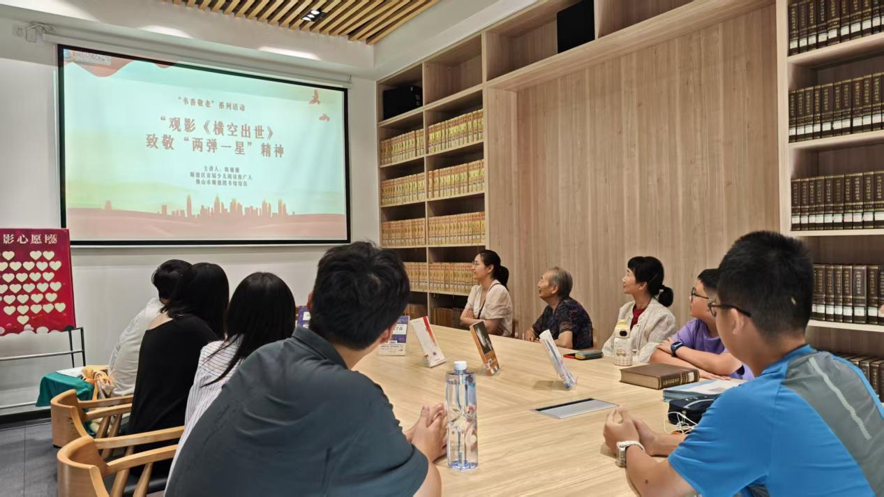 2025年10月18日下午,顺德图书馆三楼学者沙龙内,“书香敬老”系列活动——观影《横空出世》,致敬“两弹一星”在温馨的氛围中如期举行。