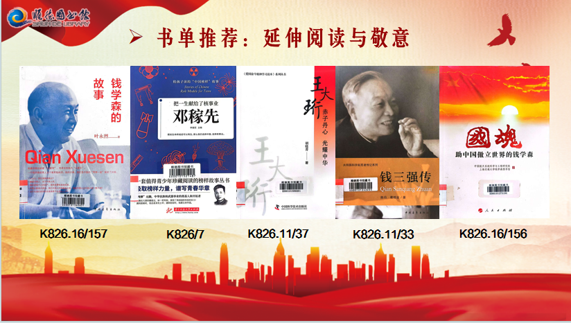 活动开始,主讲人陈老师首先为大家梳理了电影《横空出世》的历史背景与故事脉络,简单地为大家介绍了23位获得“两弹一星”功勋奖章的科学家。现场为读者们推荐了一系列与“两弹一星”元勋们相关的书籍,供大家翻看借阅。