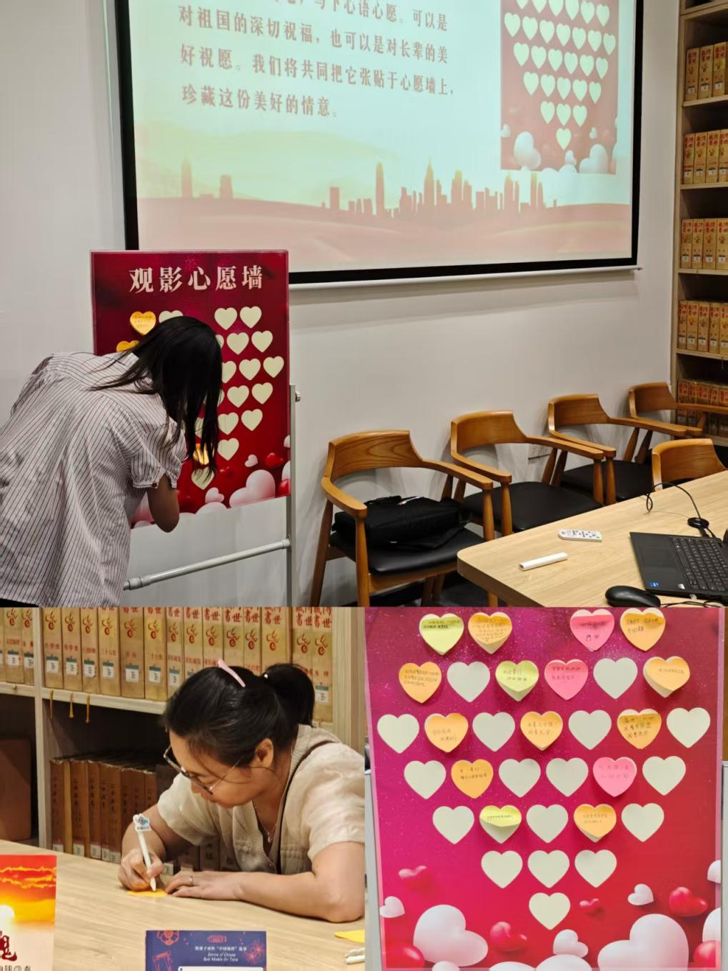 最后,活动进入“心愿墙”环节。读者们纷纷提笔,写下自己对祖国和长辈们的祝福,它让老一辈在光影与书香中重温了奋斗的记忆,也让年轻一辈在心底萌发了家国的情怀。本次观影活动,不仅是一次对历史的致敬,更是一次情感的凝聚与精神的传承。