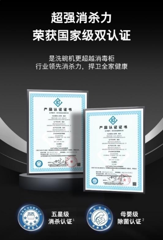 根据中家院(北京)检测认证有限公司报告(编号:VDM-00601-2025001033-000088),依据CHCT-JSGF-142-2022《母婴级洗碗机性能评价技术规范》对“博世BOSCH”牌“SJU6ZMB11C”进行了母婴洗净测试、母婴干燥测试、漂洗性能、除菌率、噪声性能等多个项目检测,在测试程序下洗涤烘干,可满足母婴级洗碗机认证;