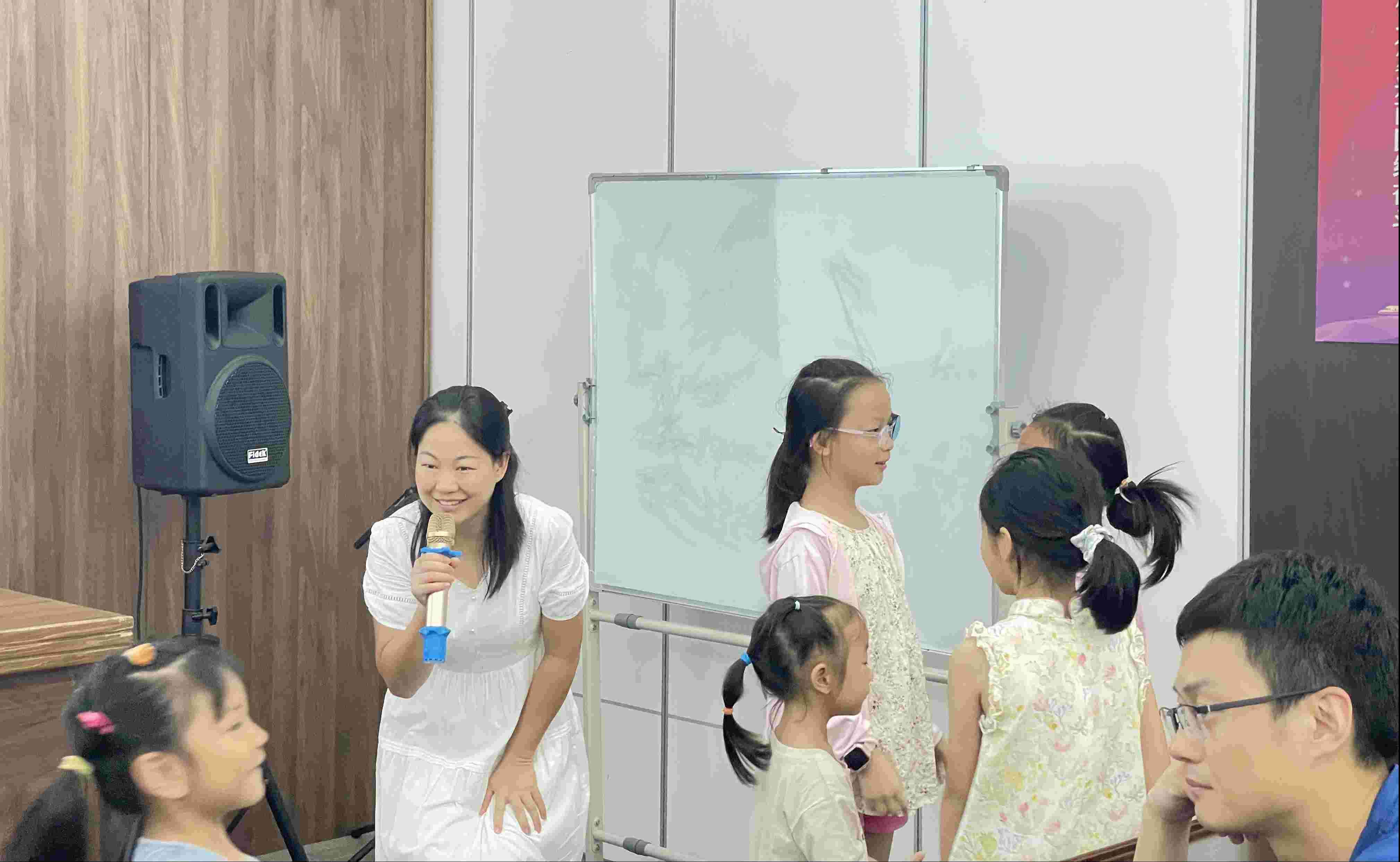 随着贺辉老师生动的讲述,大家走进《爱打岔的小鸡》的奇妙世界,孩子们时而屏息倾听,时而咯咯大笑。