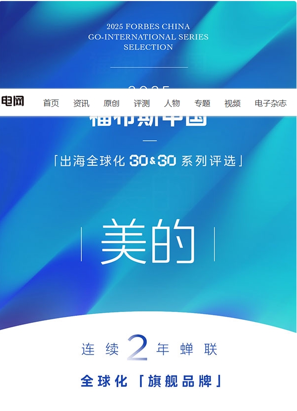 11月4日,“2025福布斯中国·出海全球化30&30系列评选”结果揭晓,美的荣膺“旗舰品牌”称号。