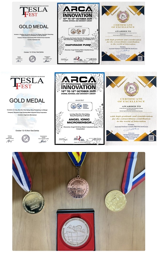 2025年10月,全球净水科技领域迎来中国力量的高光时刻。安吉尔集团自主研发的V12超能泵与AIMS离子微传感器两项核心技术,在塞尔维亚特斯拉节、克罗地亚第23届ARCA国际创新展两大国际盛会中连获殊荣,一举拿下两项TESLA FEST金奖、两项技术卓越证书、一项ARCA发明铜奖和一份ARCA认可证书,以实打实的科技突破,代表中国净水在世界创新舞台上赢得高度认可。