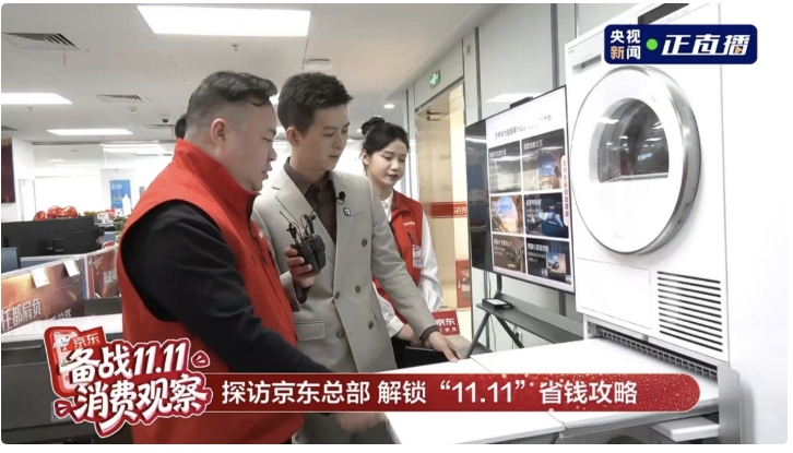 央视新闻主持人王言从京东家电家居空调业务部负责人处了解到,今年京东11.11出现了与往常不一样的消费趋势。首先,消费者正在逐渐告别“坏了才换”的传统模式,对于生活品质、使用体验等方面的需求,以及国补等政策支持,让家电家居产品加速迭代;其次,消费者不再仅仅关注“性价比”,近半用户选择“一步到位”的换新模式,1/4的用户选择“优先顶配”的高标准;最后,更多消费者认可高端家电的长期价值,超过六成的用户认为高端家电关乎日常生活的舒适度和幸福感,愿意为更卓越的性能、设计与体验投入。