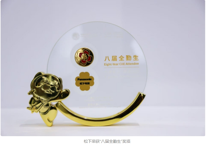 值得一提的是,松下今年荣获中国国际进口博览局及国家会展中心(上海)授予的“八届全勤生”奖项。这一荣誉,不仅是对松下八年来坚持不懈参与进博会的肯定,更是对松下为展会“越办越好”作出贡献的认可。