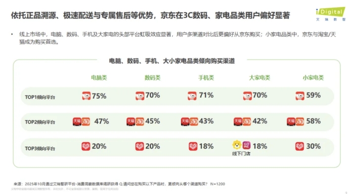 艾瑞咨询数据显示,今年双11期间,有70%用户选购大家电首选京东,近6成用户在购买小家电时也会优先选择京东,稳居行业榜首。在家电选购渠道中,京东的用户信任优势尤为突出。大家电品类里,70%的消费者将京东列为首选;小家电品类中,59%的用户优先通过京东下单,两项占比均居行业首位。这一数据背后,是京东长期以来在商品丰富度、品质可靠性、物流效率及服务完善性上的深厚积累,已形成覆盖“选购-配送-安装-售后”的全流程服务闭环,成为消费者购买家电的“安心之选”。