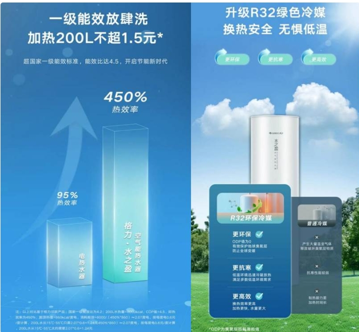 面对秋季频繁的热水需求,“电费焦虑”是不少家庭的痛点。格力水之盈空气能热水器以超一级能效(能效比达4.5)将节能属性拉满,采用R32升级环保冷媒,兼具三重优势:一是更环保,ODP值为0,不破坏臭氧层,有效防止全球变暖,契合绿色生活理念;二是更高效,换热效率高,系统制热能力与内循环更流畅,少量电能即可驱动制取澎湃水量;三是更抗寒,低温环境下可迅速冷凝放热,满足秋冬低温环境热水需求。格力水之盈真正做到“省电不省热”,秋冬频繁用水也不心疼电费,让舒适沐浴与绿色地球并行。