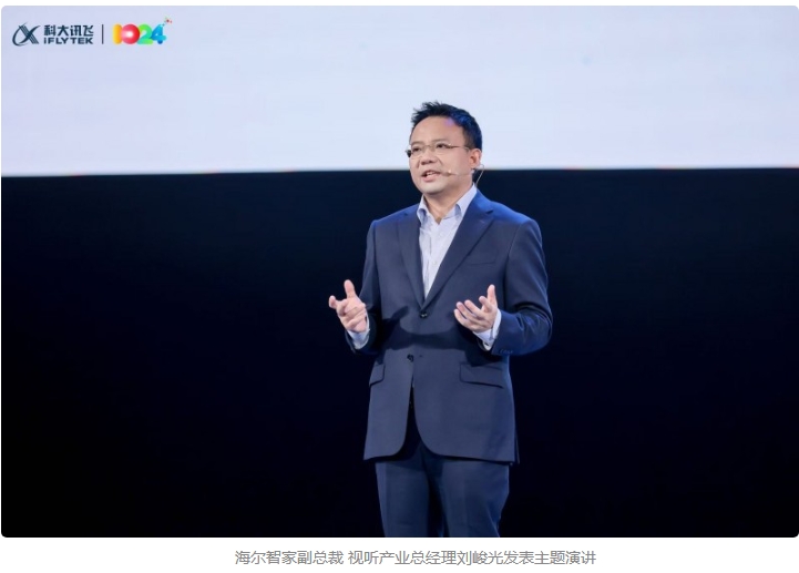 海尔电视为科大讯飞年度卓越战略合作伙伴,本次也受邀参加全球1024开发者节。大会现场,海尔智家副总裁 视听产业总经理刘峻光发表“智启视界,AI重塑电视未来”主题演讲,他指出,电视正从传统的观影设备进化为主动感知、懂用户需求的家庭智慧中枢。通过AI实现交互、画质、音效及内容推荐的全面升级,如方言交互、情绪感知、适老关怀等创新功能,让电视成为连接多元场景的智慧核心。