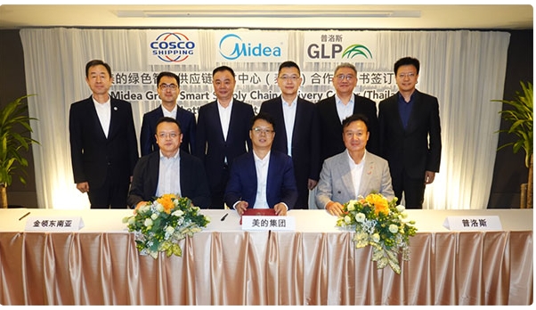 11月12日,美的国际供应链与金领东南亚(中远海控下属公司)、普顺投(普洛斯下属公司)在泰国签订了绿色智慧供应链(泰国)交付中心(以下简称“交付中心”)项目合作意向书。