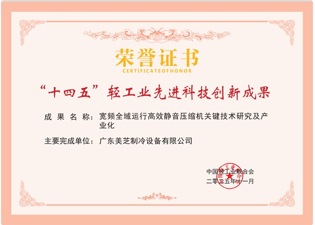 美芝“宽频全域运行高效静音压缩机关键技术研究及产业化”获评轻工业“”十四五“”先进科技创新成果