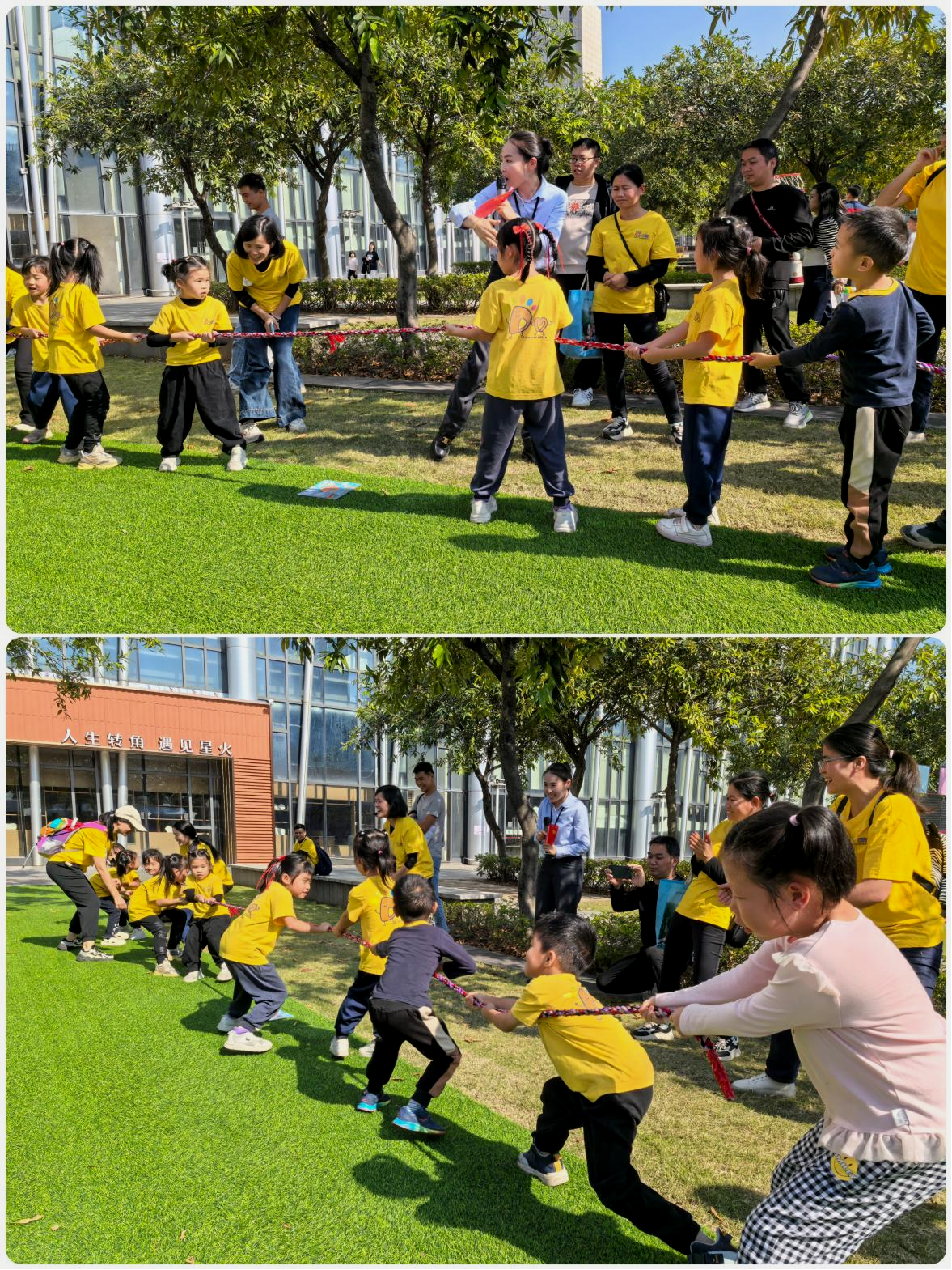 拔河比赛:团结协作中笑声不断
