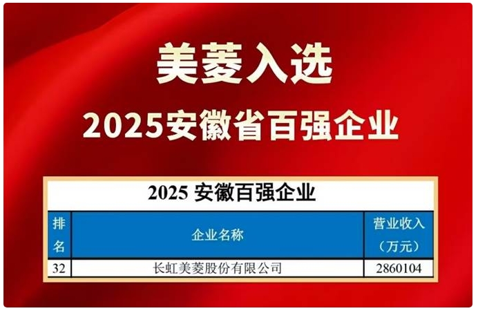 日前,2025年安徽省百强企业榜单在合肥发布,凭借去年的企业营收稳健增长,长虹美菱再次登上榜单,荣登安徽省百强企业榜单,再次彰显品牌发展硬实力。