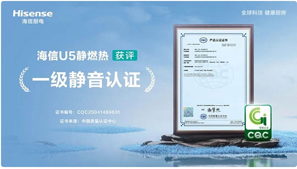 近日,海信厨电新发布的U5燃气热水器荣获中国质量认证中心颁发的一级静音认证。这一权威认证标志着海信厨电在静音技术领域继风眼U5静烟机之后的再一次突破,为用户打造静音舒适的健康厨房体验再添重磅砝码。