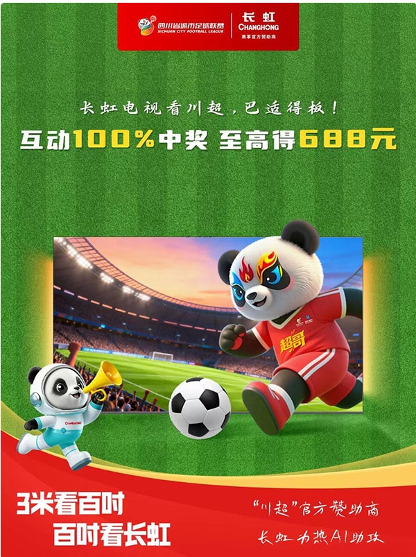 川超赛事热势正酣,长虹互动福利持续加码!为助力广大球迷打造高品质家庭观赛体验,长虹电视将本次活动延期至11月30日,欢迎广大用户前往小红书参与#长虹电视看川超巴适得板#话题活动,发布足球或百吋电视相关内容并@CHANGHONG长虹电视,赢取至高688元百吋观赛购物金、视频会员等专属好礼,让你的观赛装备升级之路“巴适得板”!
