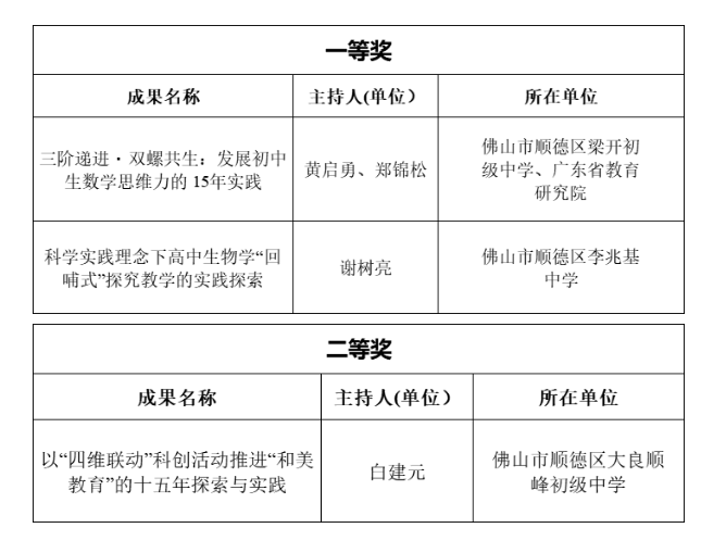 12月1日,广东省教育厅公示2025全省学校优秀教学成果奖(基础教育类)拟获奖成果名单。基础教育类优秀教学成果449项,其中顺德3项成果分别拟获基础教育类优秀教学成果奖一等奖、二等奖,一起来看看。