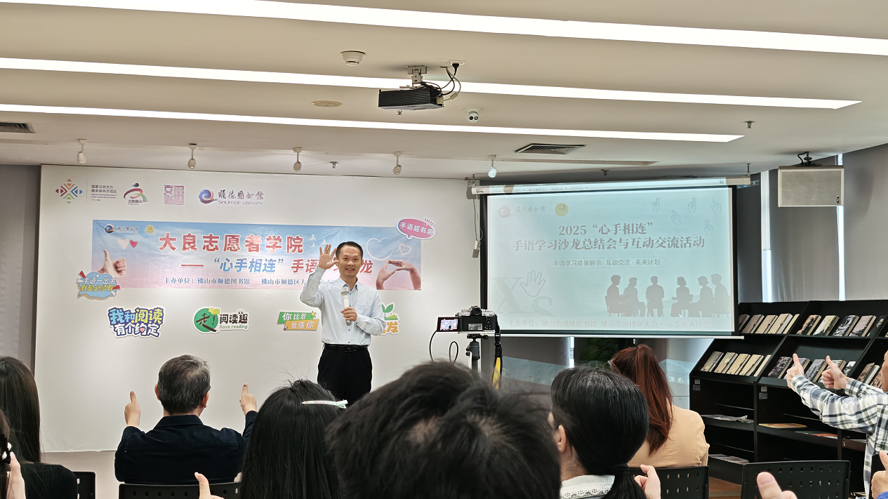 11月30日上午,2025年“心手相连”手语学习沙龙总结交流会在顺德图书馆五楼地方文献阅览厅(顺德当代文学馆)顺利举办。