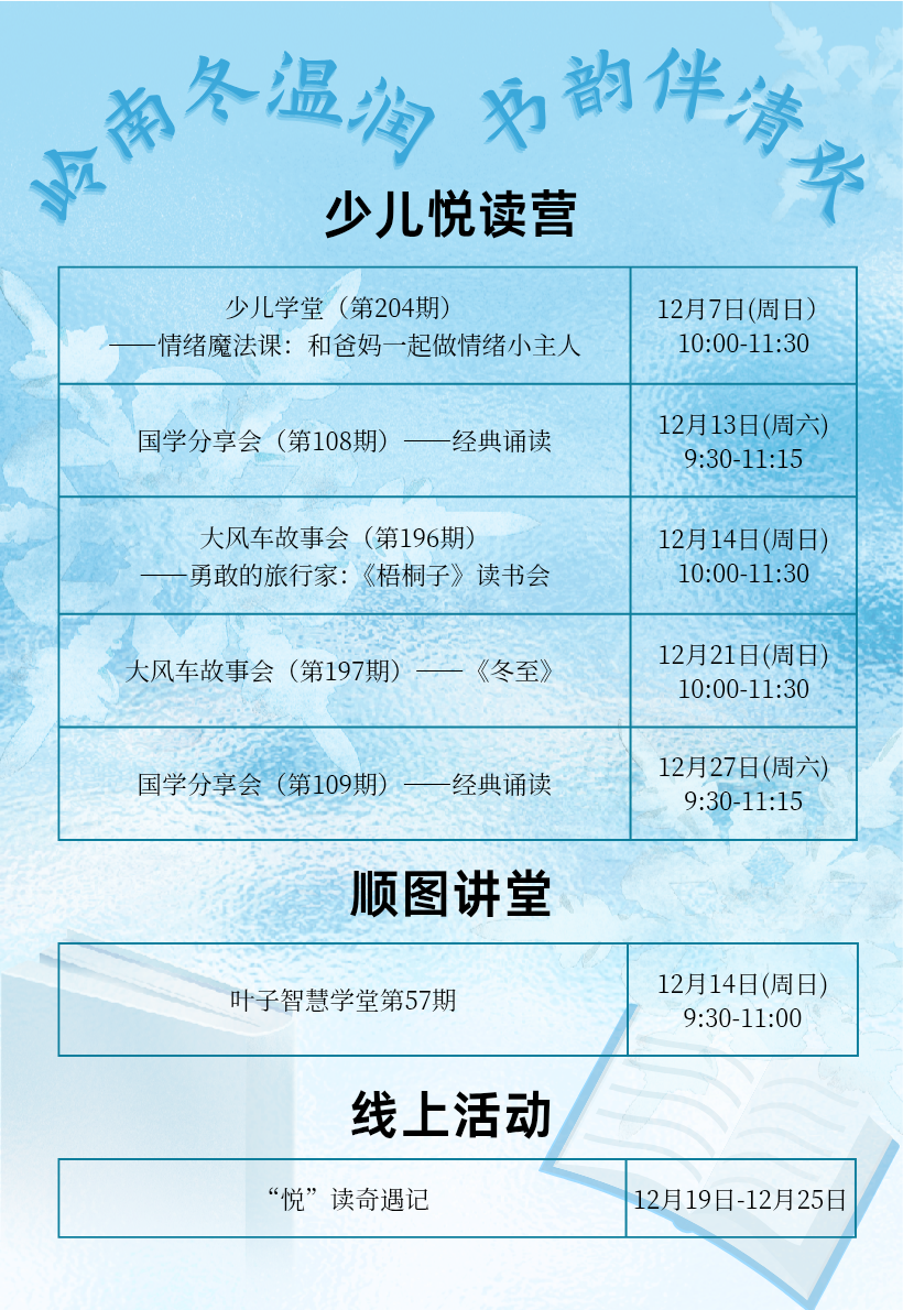 岭南冬温润,书韵伴清欢!顺图12月活动邀您“阅”伴岁末安暖