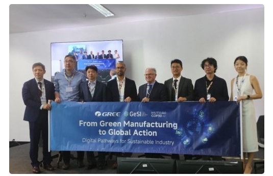 在COP30会议期间,格力做了一件比供应空调更有意义的事。它携手全球赋能可持续倡议组织(GeSI)举办“从绿色制造到全球行动—可持续产业的数字化路径”专题会议,与联合国全球创新中心、隆基绿能、阿里云、腾讯等机构和企业,共同探索制造业的减碳路径。