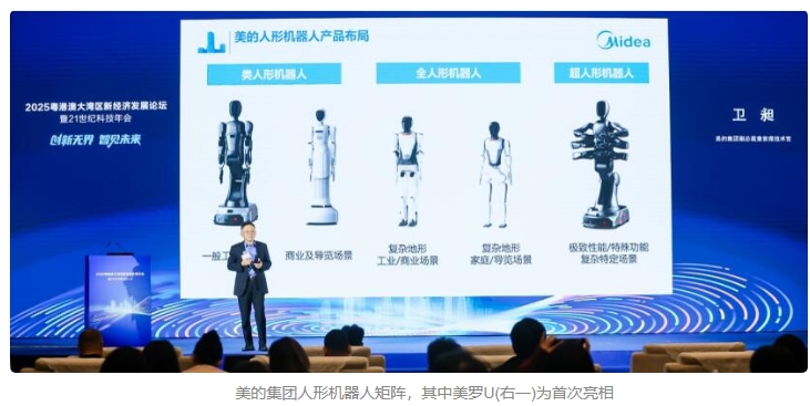 2025年12月5日,“2025粤港澳大湾区新经济发展论坛暨21世纪科技年会”在广州召开,美的集团副总裁兼首席技术官(CTO)卫昶应邀参会,发表题为《工业机器人、家电机器人化与人形机器人:美的主动智能探索》的主题演讲,并首次正式披露超人形机器人“美罗U(MIRO U)”。作为行业首创的六臂轮足式人形机器人,该产品以“作业能力突破人类生理极限”的技术特性,为论坛提供了重要产业实践案例,引发在场企业高管、行业专家和媒体的关注。