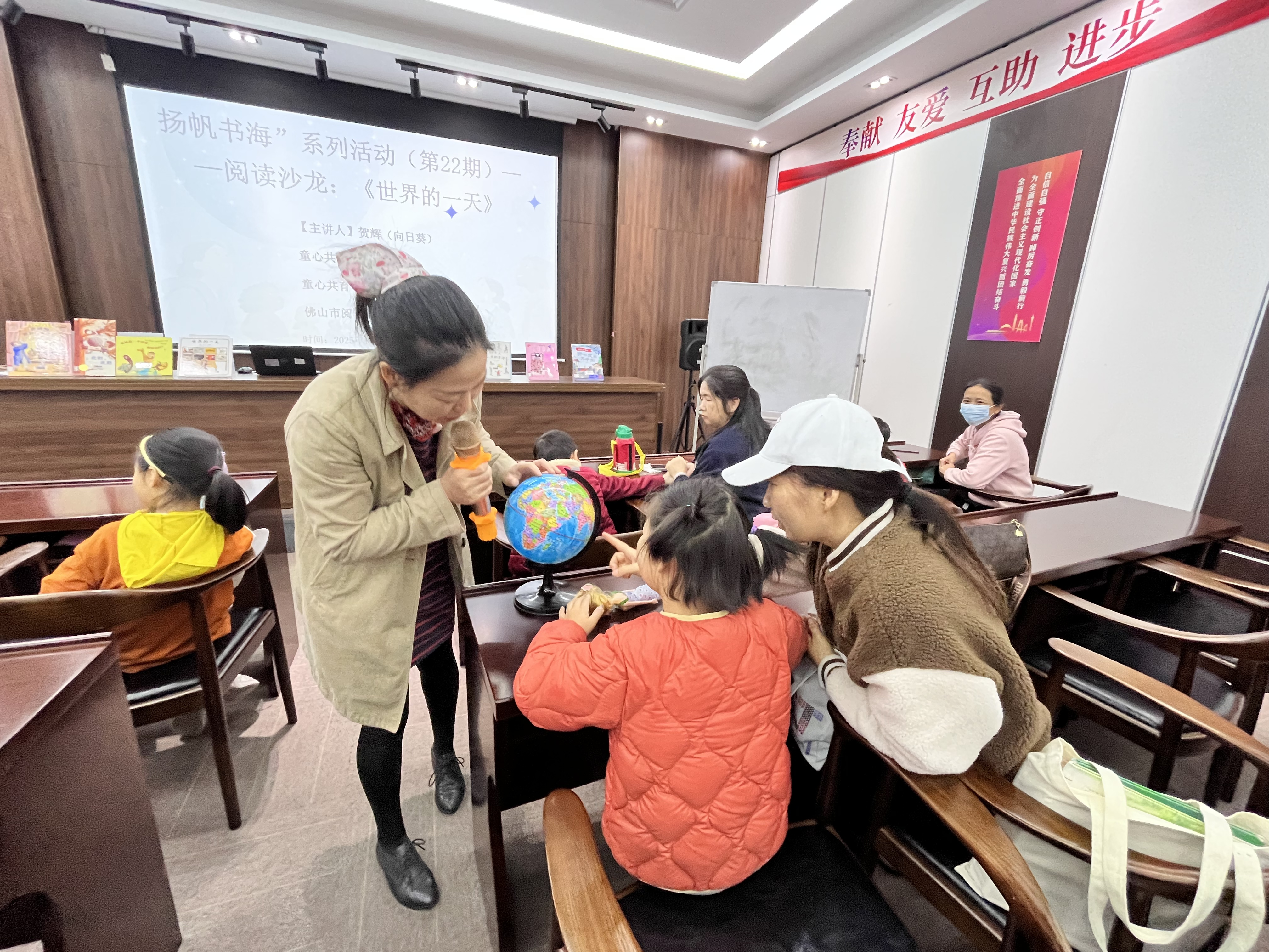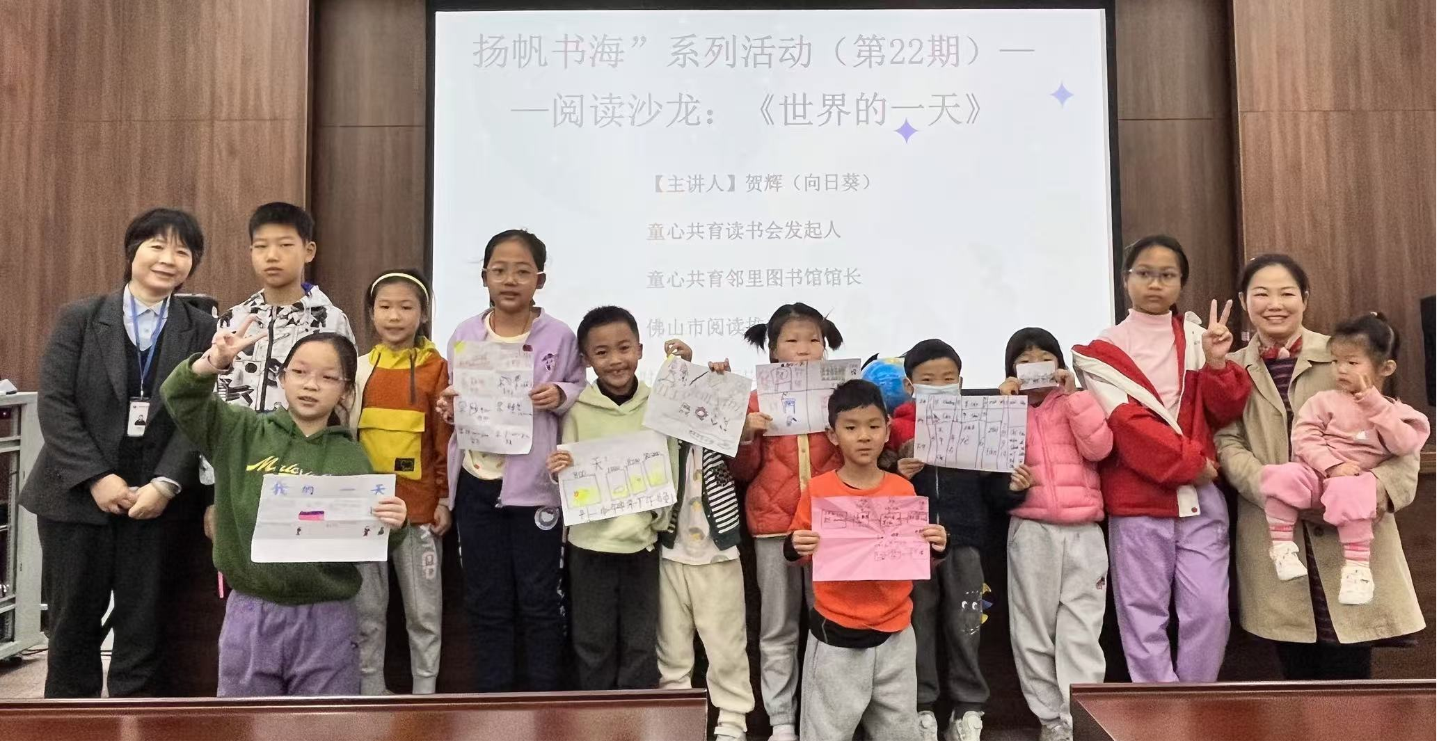 12月28日,在顺德图书馆一楼新时代文明实践展示体验馆“扬帆书海”系列活动的现场,孩子们跟随佛山市少儿阅读推广人贺辉老师的引领,翻开绘本《世界的一天》,开启了一场跨越时区与大陆的奇幻旅程。