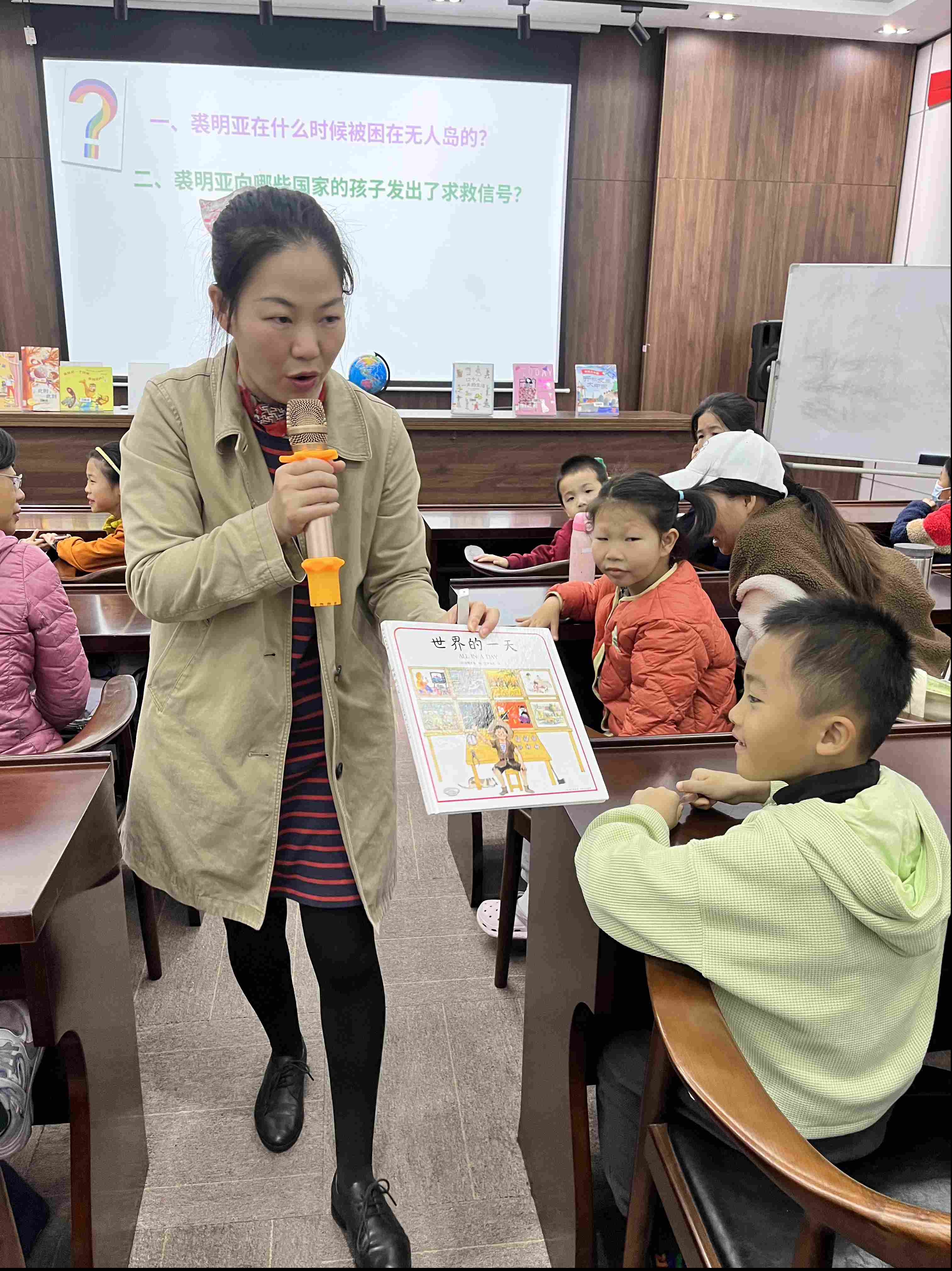 从破冰游戏开始,活动现场便洋溢着轻松与欢笑。随着贺辉老师生动的讲述,孩子们在书页间穿越时区、横跨大陆,窥见了同一时刻地球上丰富多彩的生活面貌:有人正迎接清晨,有人已沉入梦乡;有的地方夏日炎炎,有的地方白雪皑皑。抽象的地理概念,化为了具体而惊奇的生活发现。