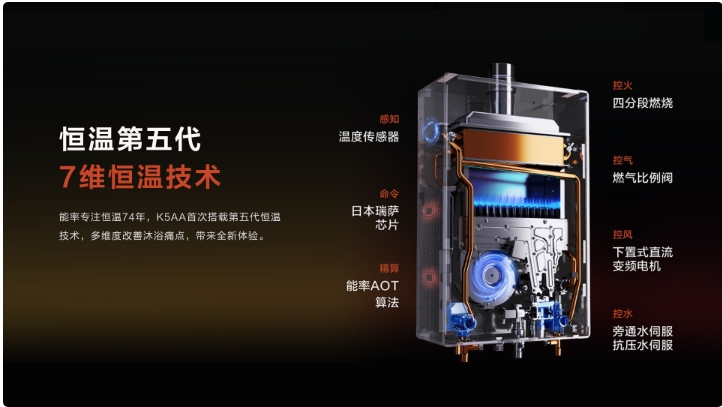 在高端燃气热水领域,实现水温稳定已不鲜见。但作为技术引领者,能率(NORITZ)再次向前一步,其推出的“PRO-Control冷热双水量伺服器”K5热水器,在“双芯控温技术”的智能协同下,构成了软硬一体的双核调控系统,将恒温精度与场景适应性推向新高度,实现从稳定到精准无感的体验跃迁,标志着恒温控制进入全新的“双核”时代。