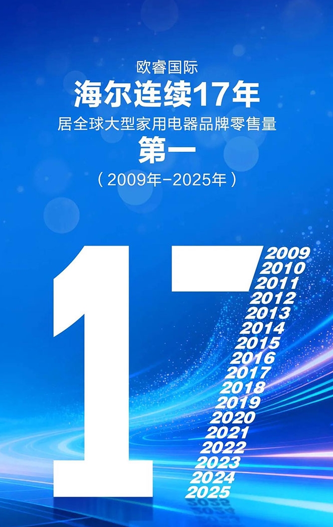 从17年前初登全球第一,到如今构建起覆盖高端品牌、智慧场景与产业生态的全球化体系,海尔的“连冠”之路,是一条以用户为中心、坚持自主创新、敢于全球创牌的长期主义之路。