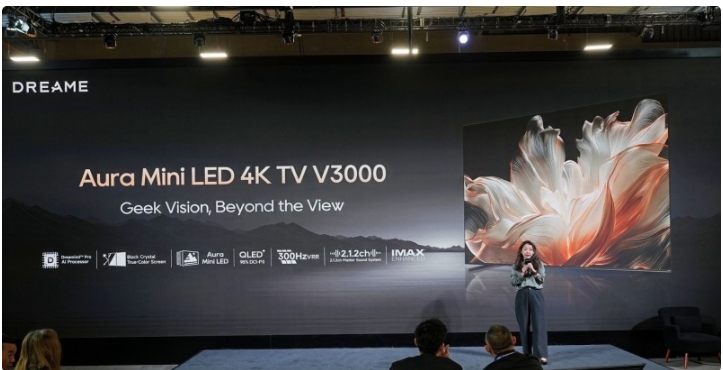 此次发布的新品核心是采用追觅独家Aura Mini LED臻彩显示方案的智能电视产品。其中的追觅电视Aura Mini LED旗舰天璇V3000融合了三种AI加持,凭借独家Dreamind™ Pro AI画质引擎和强劲的本地AI算力,能够智能识别内容并实时优化画面;同时内置19项AI智能体,不同智能体分别扮演家中管家、健身私教、英语老师、儿童玩伴等多重角色,而且支持多种方言,让全家人都可以享受AI带来的乐趣;而独家的Dreamehome应用,可以通过一句“你好追觅”便能轻松操控电视及连接的全屋追觅智能家居设备。