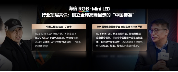 国际信息显示学会(SID)全球总裁严群也给予高度评价:“RGB-Mini LED技术是革命性突破,海信等终端企业整合创新标志着中国显示产业已告别跟随,正凭全产业链优势,以开放姿态与全球伙伴共建健康、极致、绿色的未来显示生态。”