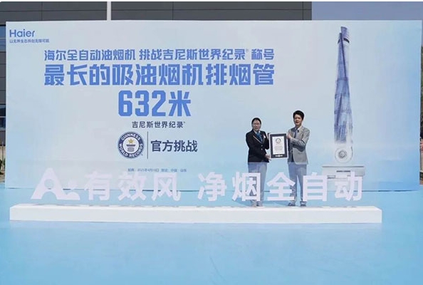 行业唯一!海尔有效风烟机挑战632米超长排烟创造吉尼斯世界纪录称号,以极致技术攻克中式厨房的排烟难题。