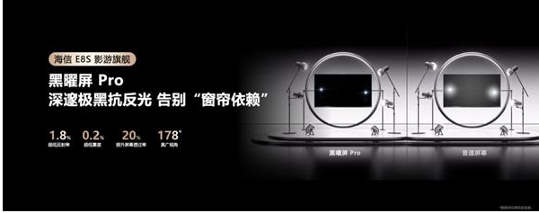 不仅如此,海信E8S还搭载了海信全自研的信芯AI画质芯片H7,108bits的控光精度,能精准拿捏亮场与暗场的细节,既不会让亮部刺眼,也不会让暗部丢失层次。100%BT.2020超广色域覆盖,让红色更正、绿色更准、蓝色更透,ΔE<1的专业级色准,即便在电影导演眼中挑剔的细腻色调,也能被精准还原。相较于SQD-Mini LED“二维控光”造成的能量浪费,海信独创的三维光色同控技术能让光线直达人眼,实现高效控光,再加上黑曜屏Pro仅1.8%的超低反射率与178°广视角设计,无论正午阳光直射还是身处客厅角落,都能收获清晰通透、观感一致的视觉体验。