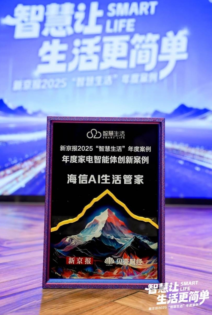 2025年,是AI技术落地家庭场景关键之年,海信AI家电紧扣“场景应用”趋势,构建“感知-理解-决策-执行”的垂类家电智能体,推动家电从被动响应的工具向主动服务的伴侣进化,本次获奖展现海信智慧生活场景创新成果。
