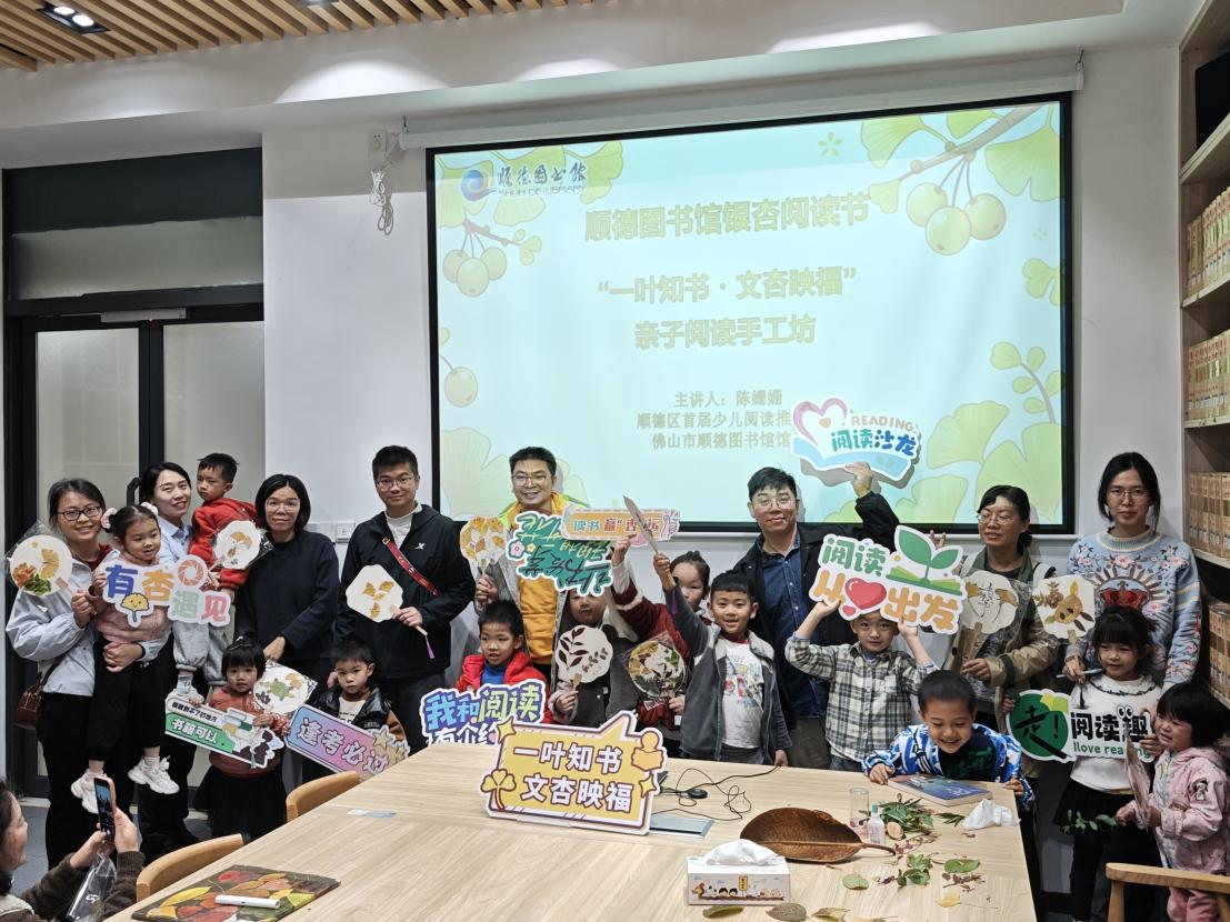 1月31日上午,一叶知书·文杏映福——亲子阅读手工坊活动在顺德图书馆三楼学者沙龙顺利开展。活动由顺德区首届少儿阅读推广人、顺德图书馆馆员陈姗姗主讲,以绘本《叶子先生》为载体,带领读者们跟随作者的脚步,以独特的视角去探寻书中不一样的美。