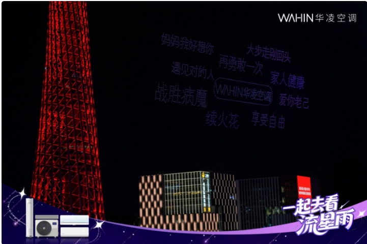 华凌空调“流星雨”无人机大秀,不仅是一场震撼又治愈的视听狂欢,更为华凌空调“心愿马上凌”活动画上了一个温暖的句点。
