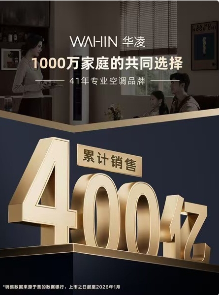 凭借着“听劝”的品牌理念以及超高的产品质价比,华凌空调收获了市场的高度认可。数据显示,截至2026年1月,华凌空调全网累计销售突破400亿,不仅成为年轻人家电消费名副其实的首选品牌,更用实力证明了国货品牌的底气与潜力。