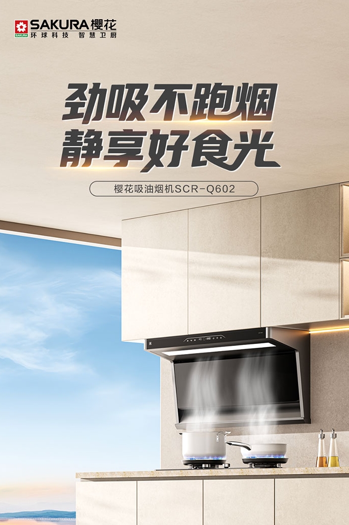 樱花吸油烟机Q602以更贴近中式烹饪习惯的设计思路,让厨房轻松回归洁净清爽,也让厨居时刻少一分负担,多一份从容。