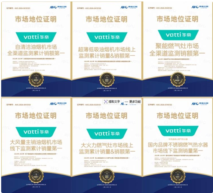 过去一年里,“厨电三杰”之一的华帝在创新引领上表现尤为突出。近期奥维云网(AVC)公布了2025年厨电市场的监测结果,数据显示,华帝在多个细分赛道上摘得魁首:超薄低吸款式油烟机线上渠道累计销量第一,销售额第一;含蒸汽清洗和高温溶解功能的自清洁油烟机,全渠道累计销售额排名第一;风量≥30m³/min+的大风量油烟机线下渠道累计销售量第一;聚能燃气灶全渠道零售额第一;不锈钢燃气热水器零售量第一......
