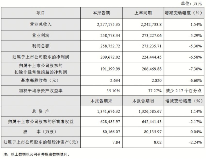 加权平均净资产收益率较同期减少 2.17 个百分点,主要因本期归属于上市公司股东的净利润较同期下降所致。