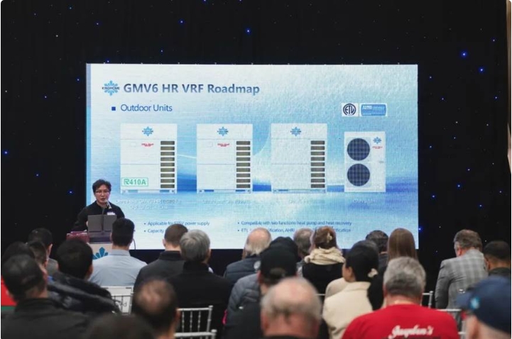 在随后举行的产品发布会上,晶弘正式推出 R32家用冷暖设备产品系列、商用屋顶机,以及直流变频多联机组GMV热泵系统。新产品线包括专为加拿大严寒气候打造的高性能热泵系统,在机器性能和应用方面全面升级。全线新品已获得AHRI,ETL等机构的能效认证,多项产品符合加拿大国家级以及地区级别补助。